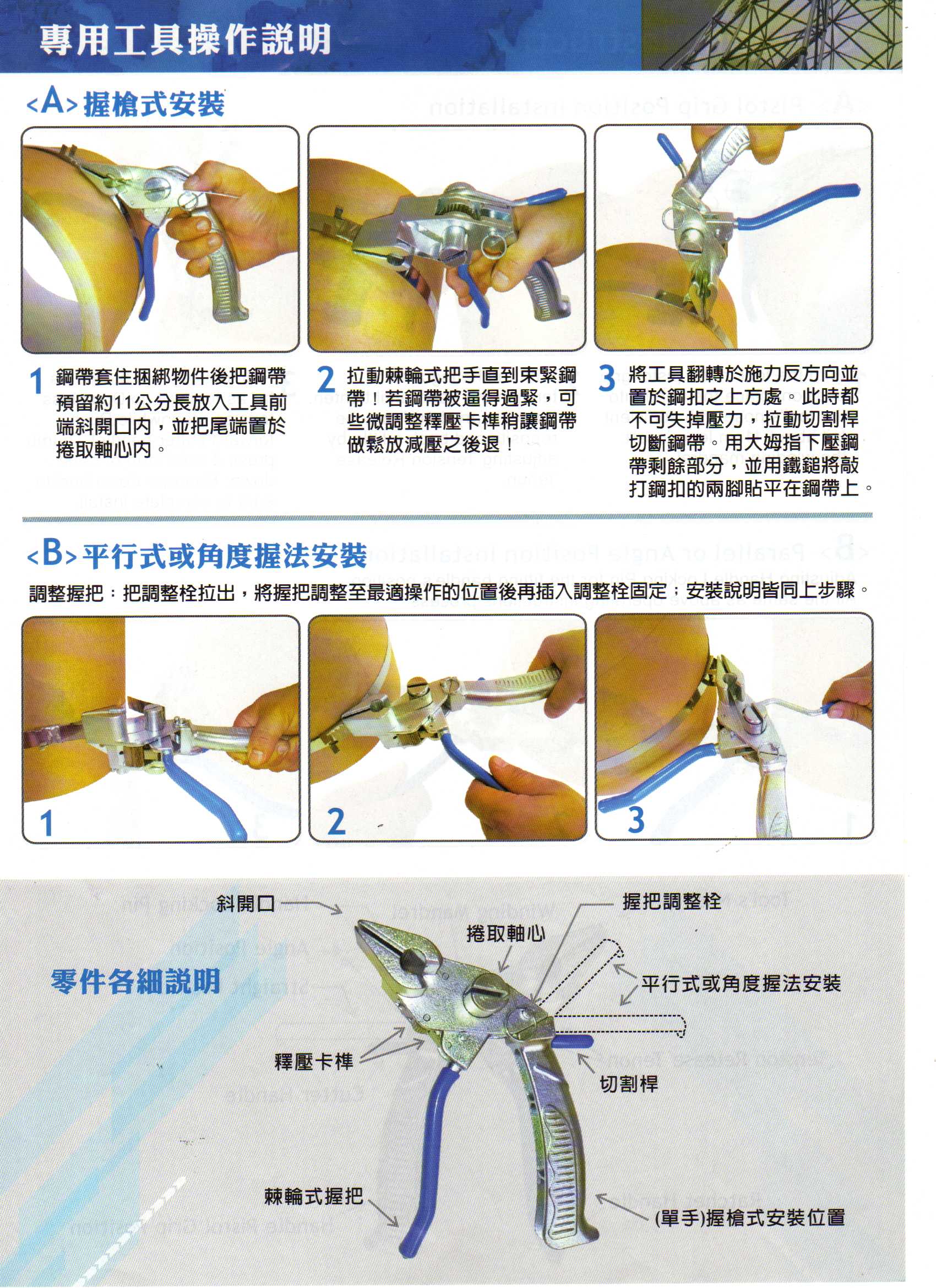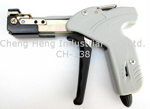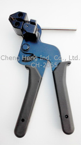 CH-075 Ratchet type tightening andcutting a band clamp is provided with a separable body and handle,  2 way handle adjusts for one or two-handed tensioning. Also allow band to be repositioned