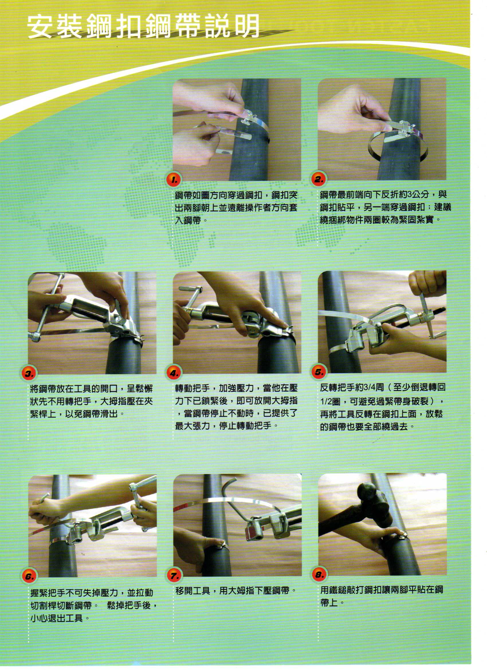 Suitable for stainless steel strapping width 3/8"~3/4"* thickness 0.030" Max. with buckle bk03,bk05,bk06, FBC and WCV stainless steel cable tie.