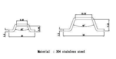 管束鋼帶寬度 : 19 mm( 0.75") 管束鋼帶厚度 : 0.65 V型槽厚度 : 1.2 mm 材質 : 帶身全 304 不銹鋼 螺絲 : 304 or 410 不銹鋼 或 碳鋼